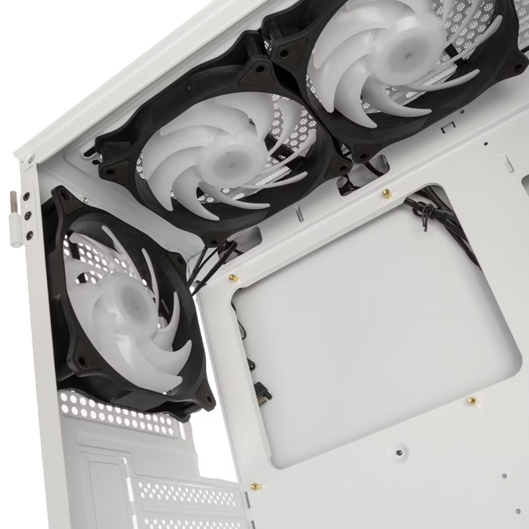 To keep your gaming PC at optimum temperature, the Kolink Observatory MX Glass can support both air and water-cooling hardware. There are five Kolink Umbra ARGB fans pre-installed across the chassis, to bolster the air flowing through the mesh panelling. The front features two 140mm fans. Upon the top, there are two 120mm models, and the rear holds a singular 120mm fan, too.